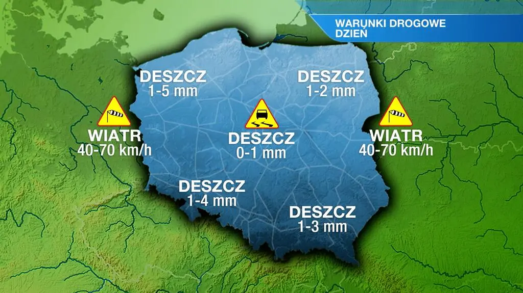 Wtorek upłynie pod znakiem pochmurnego nieba i przelotnych opadów od 1 do 5 litrów deszczu na metr kwadratowy. Na termometrach zobaczymy maksymalnie od 11 stopni Celsjusza na Suwalszczyźnie do 15 st. C na Dolnym Śląsku. Wiatr z południowego zachodu okaże się przeważnie umiarkowany i dość silny. Okresowo jego porywy mogą osiągnąć prędkość do 40-60 kilometrów na godzinę, a pod koniec dnia na zachodzie - nawet 80 km/h.