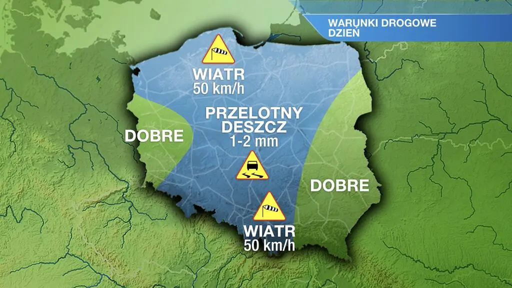 Pogoda na dziś: zachmurzenie umiarkowane i duże. W rejonie Ziemi Lubuskiej, Podlasia, Lubelszczyzny i Podkarpacia nie powinno padać, zaś w pozostałej części kraju wystąpią słabe opady deszczu do 1-3 litrów wody na metr kwadratowy. Temperatura maksymalna sięgnie od 5 stopni Celsjusza na Suwalszczyźnie, przez 9 st. C w centrum kraju, do 10 st. C na Dolnym Śląsku i w Małopolsce. Południowo-zachodni wiatr będzie umiarkowany i okresami dość silny. W porywach może osiągać do 50 kilometrów na godzinę.
