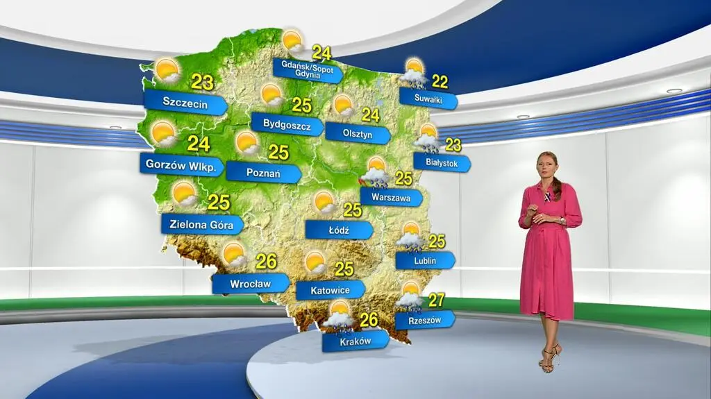 Wtorek w zachodniej części kraju przyniesie na ogół słoneczną aurę, tylko miejscami na niebie wystąpią chmury. Na wschodzie prognozuje się zmienne zachmurzenie i słaby deszcz o sumie 1-4 litrów wody na metr kwadratowy. Na termometrach zobaczymy maksymalnie od 22 stopni Celsjusza na Suwalszczyźnie do 27 st. C na Podkarpaciu. Powieje słaby i umiarkowany północno-zachodni wiatr.