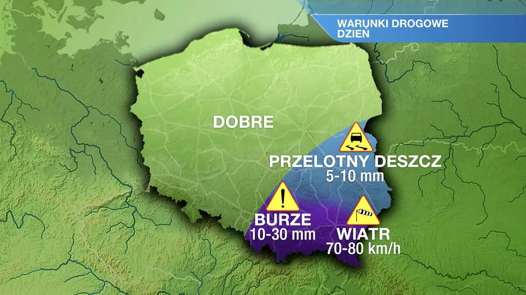 We wtorek w południowo-wschodniej Polsce prognozowane jest duże zachmurzenie z przelotnymi opadami deszczu od 5 do 10 litrów wody na metr kwadratowy i burzami, podczas których może spaść nawet do 10-30 l/mkw. W pozostałych częściach kraju spodziewane jest umiarkowane zachmurzenie. Temperatura maksymalna wyniesie od 20 st. C w południowej Polsce, przez 24 st. C w centrum kraju, do 26 st. C na południowym zachodzie. Z zachodu powieje umiarkowany wiatr, który w czasie burzy będzie silny i rozpędzi się do 70-90 kilometrów na godzinę.