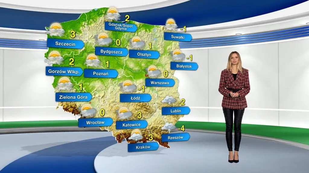 We wtorek zachmurzenie będzie duże z większymi przejaśnieniami, a na zachodzie pojawią się rozpogodzenia. W rejonie Lubelszczyzny, Podkarpacia i Małopolski wystąpią słabe opady śniegu, spadnie do 1-2 centymetrów. Temperatura maksymalna wyniesie od -5 do -3 stopni Celsjusza na Podkarpaciu i w Małopolsce, w środkowych regionach będzie od -1 do 0 st. C. Do 3-4 st. C pokażą termometry na Pomorzu oraz Wybrzeżu. Wiatr powieje z kierunku północno-zachodniego, słabo i umiarkowanie.