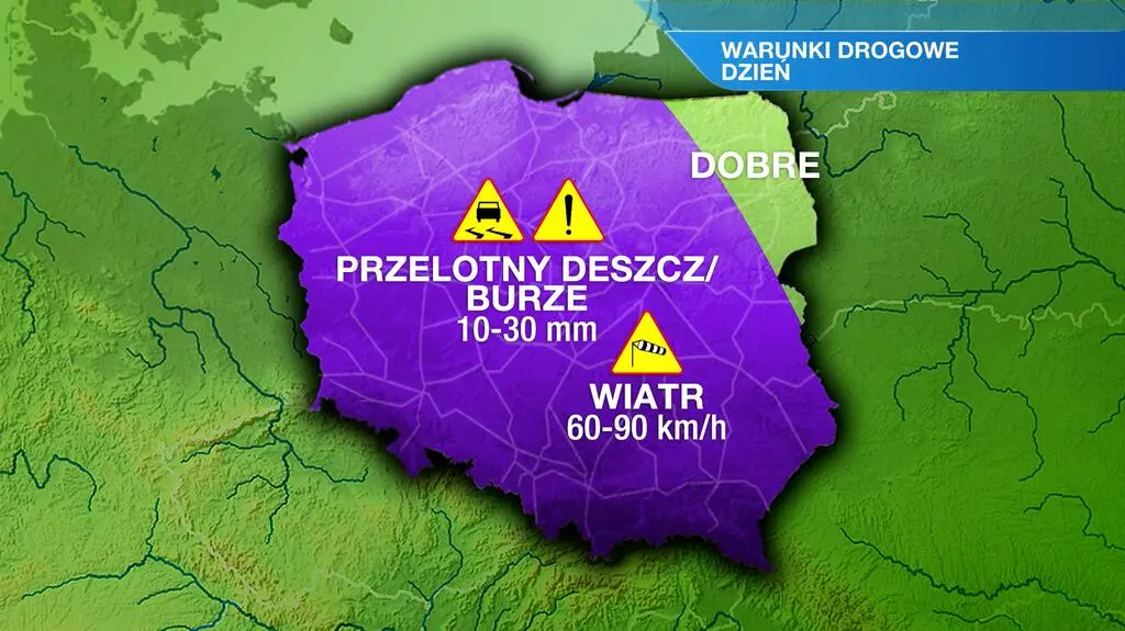 Na Podlasiu czwartek zapowiada się pochmurno. W pozostałych regionach niebo również zasnują chmury, przyniosą one ze sobą przelotny deszcz i burze z opadami 10-30 l/mkw. i porywami wiatru sięgającymi 60-90 km/h, lokalnie również z gradem. Na termometrach zobaczymy od 23 st. C Pomorzu Gdańskim do 30 st. C w Małopolsce. Powieje słaby i umiarkowany wiatr z północnego zachodu, miejscami silniejszy.
