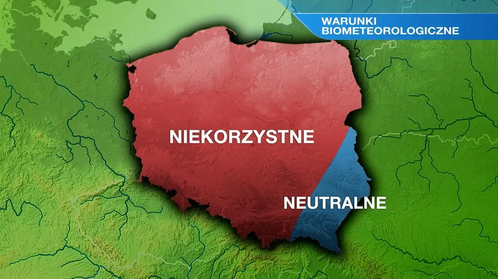 Wilgotność powietrza w ciągu dnia wyniesie od 70 procent w południowo-wschodniej Polsce do ponad 90 procent na północnym zachodzie. Odczujemy komfort termiczny, jedynie w północno-wschodniej części kraju będzie chłodno. Warunki biometeorologiczne okażą się przeważnie niekorzystne, neutralne jedynie na południowym wschodzie.