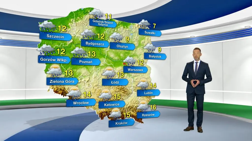Dzień w całej Polsce przyniesie duże zachmurzenie i opady deszczu, podczas których spadnie do 5 l/mkw. Termometry pokażą maksymalnie od 7 st. C na Suwalszczyźnie do 16 st. C na Podkarpaciu. Wiatr wiejący z kierunków zmieniających się będzie słaby i umiarkowany, nad morzem okresami silniejszy.