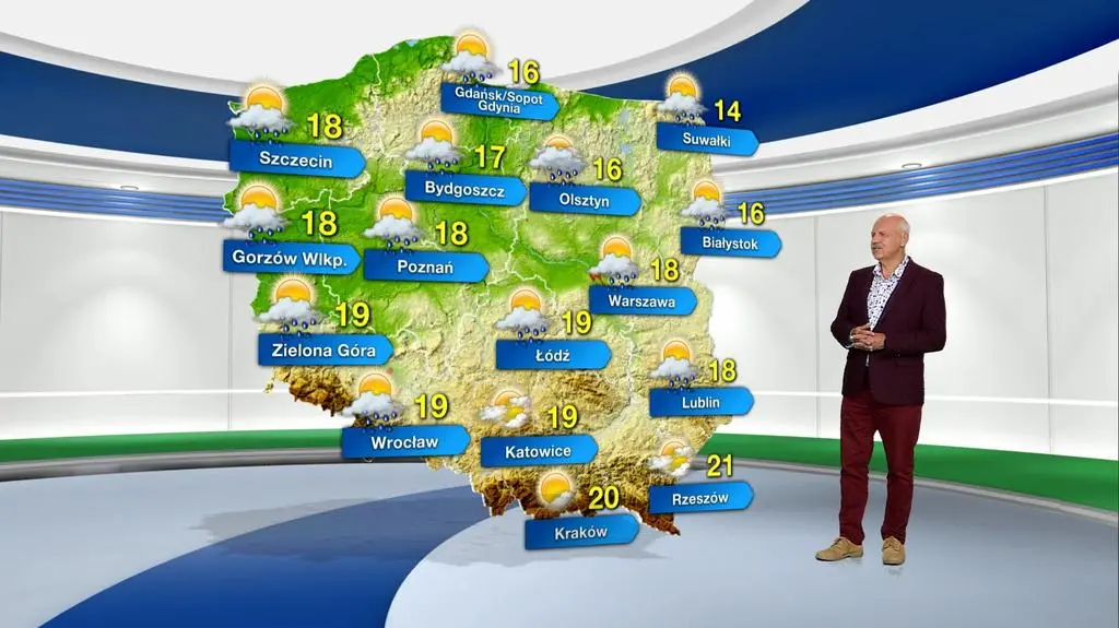 W czwartek na południu będzie przeważnie pogodnie. W pozostałej części kraju pojawi się zmienne zachmurzenie oraz przelotne opady deszczu do 1-6 l/mkw. Termometry pokażą maksymalnie od 14 st. C na Suwalszczyźnie do 21 st. C na Podkarpaciu. Wiatr z zachodu będzie umiarkowany i dość silny, okresami w porywach może osiągać 50-70 km/h. W strefie brzegowej może wiać jeszcze mocniej - do 60-80 km/h.