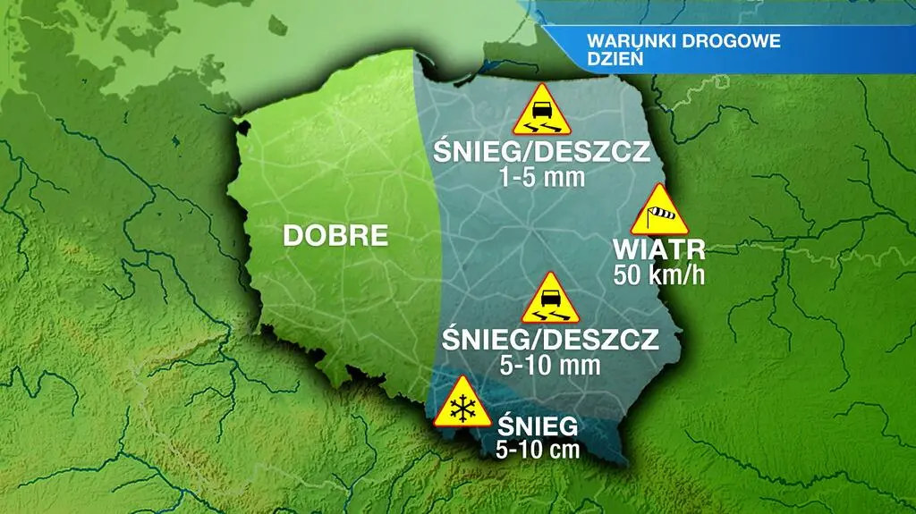 Czeka nas pochmurny czwartek. Na zachodnie możliwe są większe przejaśnienia. Od wschodu w głąb kraju postępować będą opady mokrego śniegu i deszczu ze śniegiem do 1-10 litrów wody na metr kwadratowy. Na południu, szczególnie w górach, spadnie śnieg o sumie do 5-10 centymetrów. Padać nie powinno wyłącznie na zachodzie. Temperatura maksymalna sięgnie od 2 st. C na Podkarpaciu, przez 3/4 st. C w centrum kraju, do 9 st. C na Pomorzu Zachodnim. Północno-wschodni wiatr będzie słaby i umiarkowany. Tylko na wschodzie okresami może być dość silny i w porywach osiągać do 50 kilometrów na godzinę.