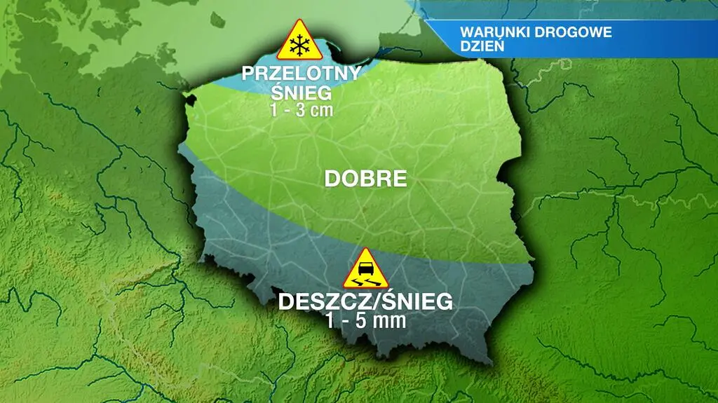 W nocy na południu kraju będzie pochmurno, prognozuje się tam opady deszczu i deszczu ze śniegiem o sumie 1-5 litrów na metr kwadratowy. W górach spadnie do 10 l/mkw. W pozostałej części kraju zachmurzenie będzie duże. W północno-wschodniej części Polski przelotnie popada mokry śnieg (do 2-3 centymetrów) i śnieg z deszczem. Temperatura minimalna wyniesie od -4 stopni Celsjusza na Suwalszczyźnie do 1 st. C na Dolnym Śląsku. Powieje zachodni, słaby i umiarkowany, tylko na południowym wschodzie okresowo silniejszy wiatr, który w porywach rozpędzi się do 40-60 kilometrów na godzinę.