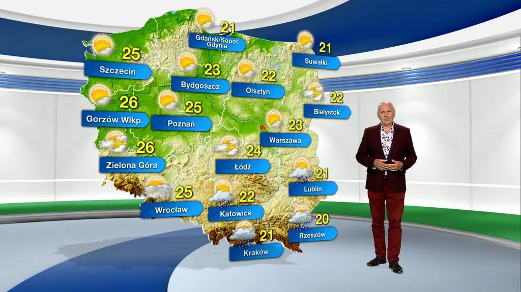 Niedziela przyniesie pogodną aurę. Tylko na południowym wschodzie kraju przelotnie popada deszcz do 5-10 l/mkw. W górach możliwe są burze. Termometry wskażą maksymalnie od 20 st. C na Podkarpaciu, przez 24 st. C w centrum kraju, do 26 st. C na Ziemi Lubuskiej. Wiatr wschodni, słaby i umiarkowany, okresami dość silny, w porywach rozpędzi się do 50 kilometrów na godzinę.