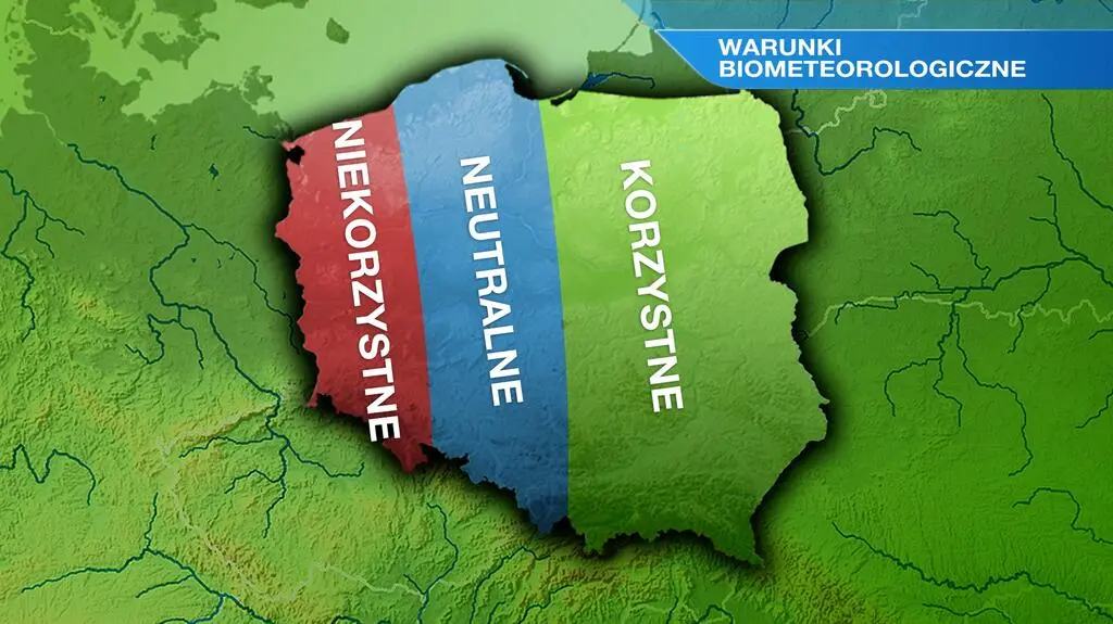 Wilgotność powietrza w ciągu dnia wyniesie 60-90 procent. Warunki biometeorologiczne będą korzystne na wschodzie kraju, przechodzące w neutralne w części centralnej, po niekorzystne na zachodzie.
