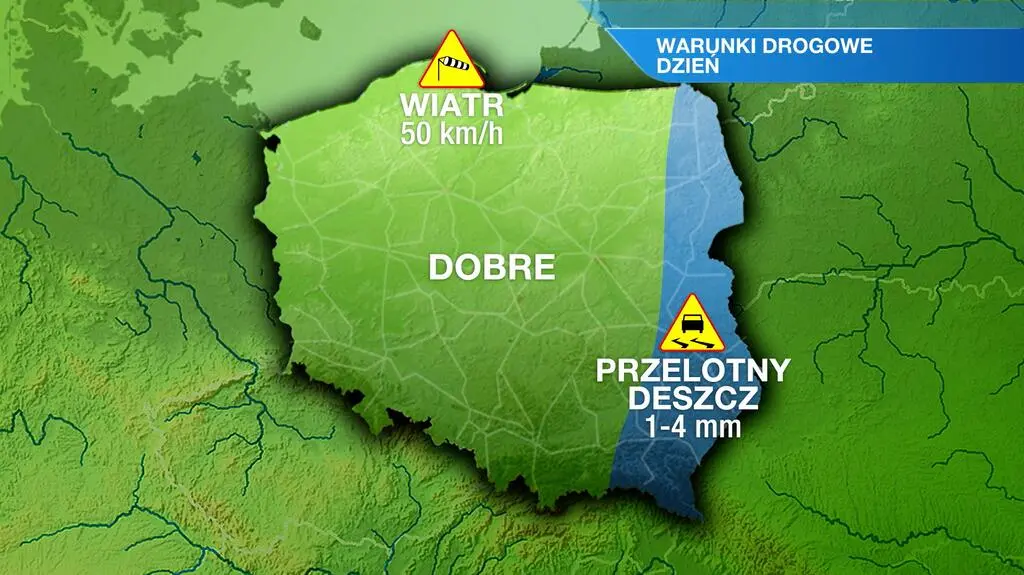 W nocy na Pomorzu i zachodzie kraju wystąpią rozpogodzenia. Poza tym będzie pochmurno z przelotnymi opadami deszczu do 5 litrów wody na metr kwadratowy. Temperatura minimalna wyniesie od 1 stopnia Celsjusza na Pomorzu Zachodnim, przez 5 st. C w centrum kraju, do 8 st. C na Podkarpaciu. Wiatr na wschodzie powieje z południa, w pozostałych regionach z północnego zachodu, słaby i umiarkowany. Tylko na północy chwilami może silniej wiać, w porywach do 50-60 kilometrów na godzinę.
