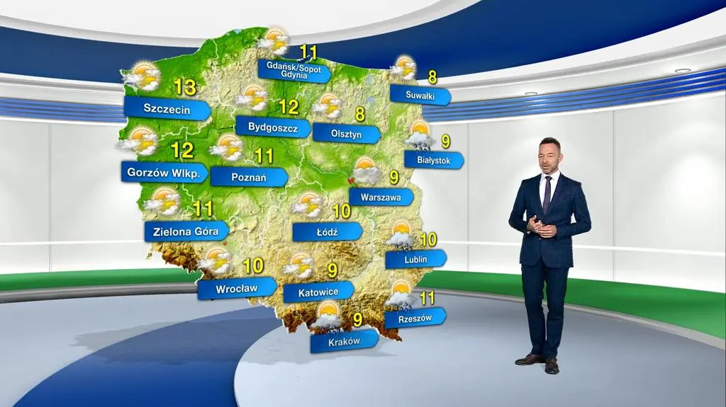 Niedziela w regionach wschodnich upłynie pod znakiem zanikającego, przelotnego deszczu. W pozostałej części kraju wystąpi małe i umiarkowane zachmurzenie. Temperatura maksymalna wyniesie od 8 st. C na Suwalszczyźnie do 13 st. C na Nizinie Szczecińskiej. Słaby i umiarkowany wiatr powieje przeważnie z południa.