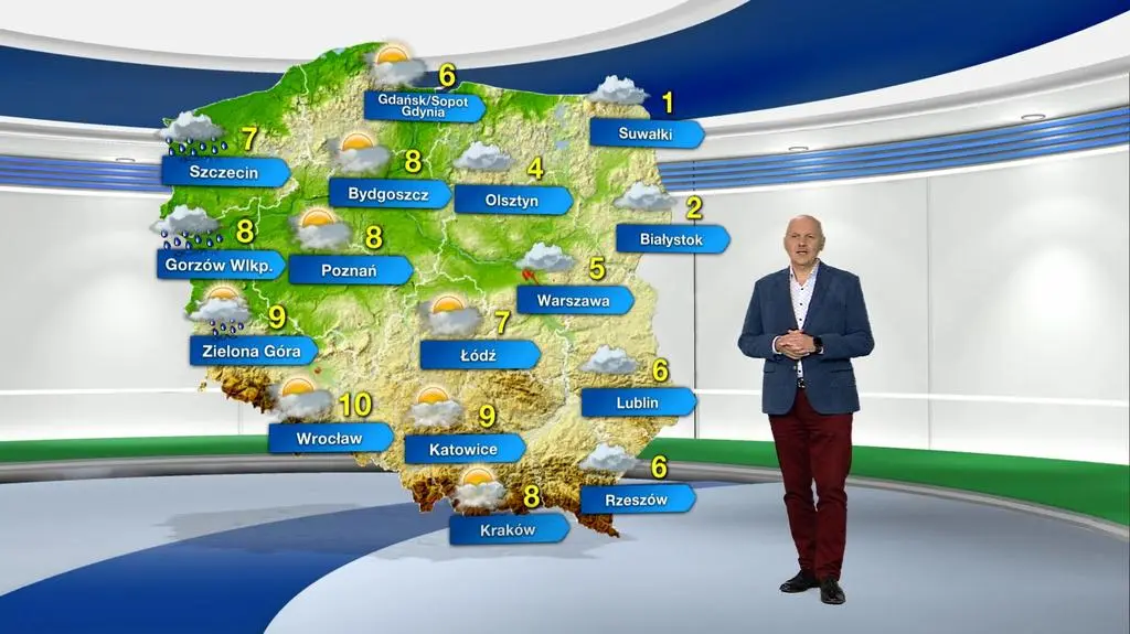 Najbliższa noc zapowiada się pochmurno z przejaśnieniami i rozpogodzeniami. Na Suwalszczyźnie prognozowany jest znikający śnieg do 1 centymetra. W pasie dzielnic centralnych widzialność może być utrudniona do 100-300 metrów z powodu mgieł. Temperatura minimalna sięgnie od -5 stopni Celsjusza na Suwalszczyźnie do 5 st. C na Dolnym Śląsku. Wiatr z południowego wschodu będzie słaby i umiarkowany. Miejscami może wiać silniej.