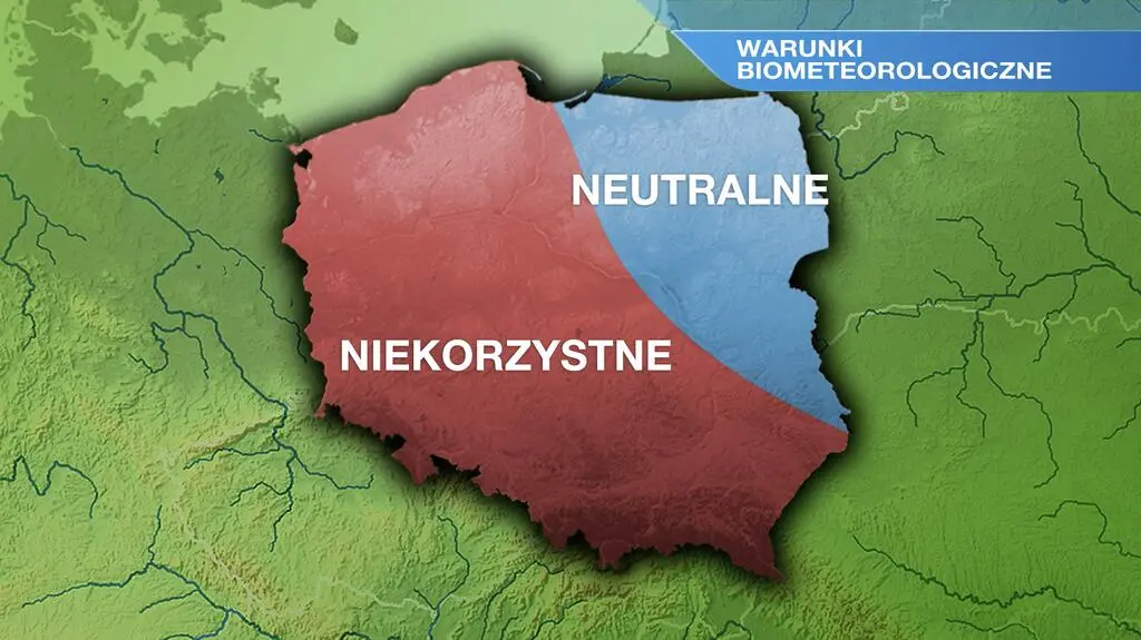 Wilgotność powietrza w piątek znajdzie się na poziomie 70-80 procent. W większości kraju będzie odczuwalne ciepło, mieszkańcy północno-wschodniej Polski odczują komfort termiczny. Warunki biometeorologiczne na północnym wschodzie i częściowo we wschodnich regionach będą neutralne, poza tym okażą się niekorzystne.