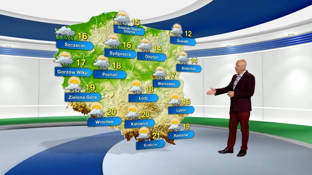 Mieszkańców Krakowa czeka piątek ze zmiennych zachmurzeniem i przelotnym deszczem. Na termometrach zobaczymy maksymalnie 21 st. C. Powieje południowo-zachodni, słaby i umiarkowany wiatr. W południe ciśnienie wyniesie 978 hPa.