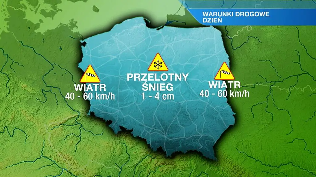 W piątek czeka nas duże zachmurzenie z przejaśnieniami. Poza tym wystąpi przelotny śnieg, którego spadnie do 4 centymetrów. Na południu popada także deszcz ze śniegiem. Termometry wskażą maksymalnie od 2 st. C na Podlasiu do 6 st. C na Podkarpaciu. Zachodni wiatr, umiarkowany i dość silny, w porywach osiągnie prędkość do 40-60 km/h.