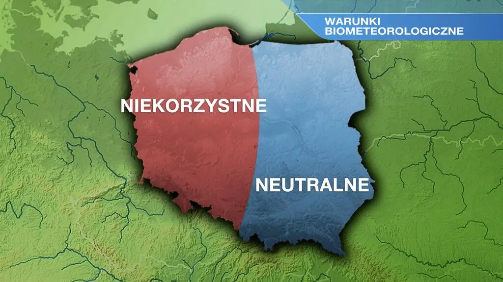 Wilgotność powietrza w ciągu dnia wyniesie około 80-90 procent. W zachodniej części kraju zrobi się ciepło, we wschodniej odczujemy komfort termiczny. Podobny podział zapanuje w przypadku warunków biometeorologicznych - na zachodzie będą niekorzystne, a na wschodzie neutralne.
