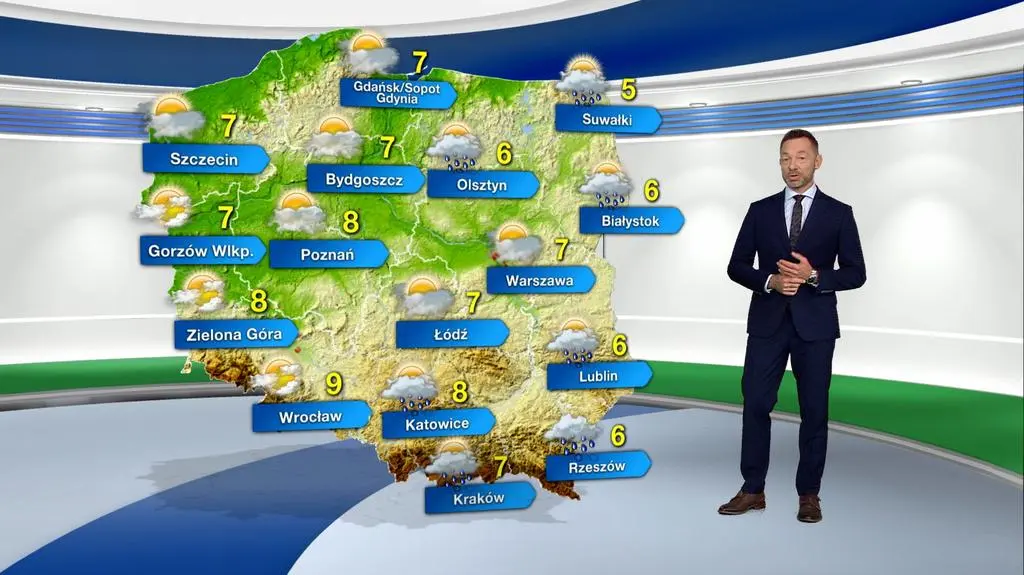 W piątek możemy spodziewać się umiarkowanego i dużego zachmurzenia. Miejscami we wschodniej połowie kraju pojawić się mogą słabe i przelotne opady deszczu rzędu 1-3 l/mkw. Temperatura maksymalna sięgnie od 5 st. C na Suwalszczyźnie, przez 7 st. C w centrum kraju, do 9 st. C na Dolnym Śląsku. Południowo-zachodni wiatr będzie słaby i umiarkowany. Na wybrzeżu jego porywy mogą rozpędzać się do 50 kilometrów na godzinę.