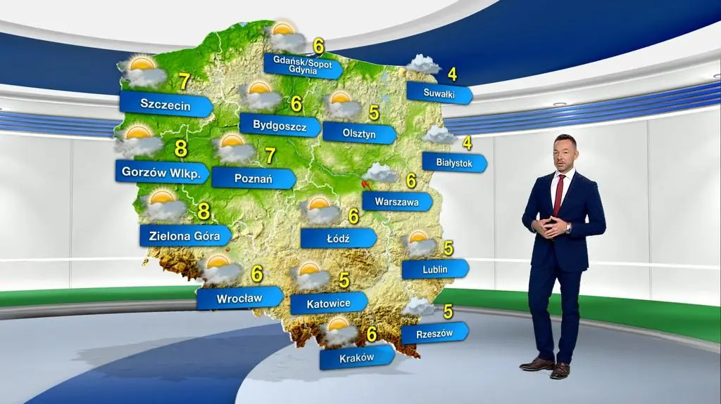 Piątek przyniesie nam pochmurną aurę z przejaśnieniami. Rano lokalnie mogą utrzymywać się mgły. Termometry pokażą maksymalnie od 4 st. C na Suwalszczyźnie i Podlasiu, przez 6 st. C w centrum kraju, do 8 st. C na Ziemi Lubuskiej. Powieje północno-zachodni, słaby i umiarkowany wiatr. Na północy i wschodzie może być dość silny i w porywach rozpędzać się do 50-60 kilometrów na godzinę.