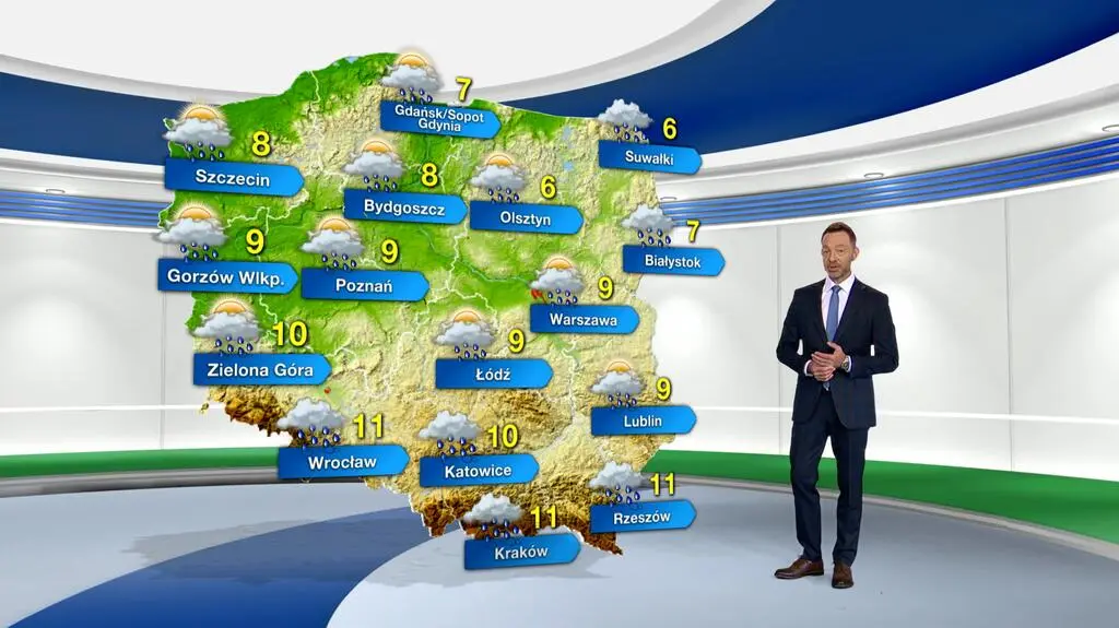 Pierwszy dzień świąt przyniesie nam pochmurne niebo z rozpogodzeniami. Mogą wystąpić opady deszczu do 2-5 litrów wody na metr kwadratowy, lokalnie do 10 l/mkw. Na południu kraju będą to opady ciągłe z przerwami, natomiast na północy i w centrum - głównie przelotne. Na termometrach zobaczymy od 6 st. C na Suwalszczyźnie, przez 9 st. C w centralnej Polsce do 11 st. C na Dolnym Śląsku. Zachodni wiatr okaże się umiarkowany i dość silny, w porywach silny i rozwijający prędkość 60-80 km/h.