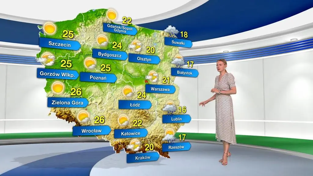 W ciągu dnia w Poznaniu będzie słonecznie. Temperatura maksymalna wyniesie 25 st. C. Słaby i umiarkowany wiatr powieje ze wschodu. Chwilami może wiać silniej. W południe barometry pokażą 1010 hPa.