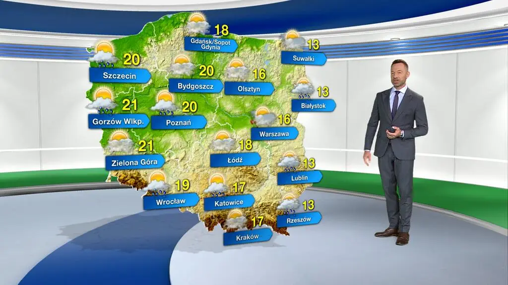 Noc zapowiada się pochmurno, ale możliwe będą rozpogodzenia. Na wschodnich, południowych i zachodnich krańcach kraju prognozowane są słabe opady do 1-5 litrów deszczu na metr kwadratowy. Na termometrach zobaczymy od 7 stopni Celsjusza na Podlasiu, przez 8 st. C w centrum kraju do 12 st. C na Wybrzeżu. Powieje północno-zachodni wiatr, słaby i umiarkowany, na wschodzie okresami dość silny.