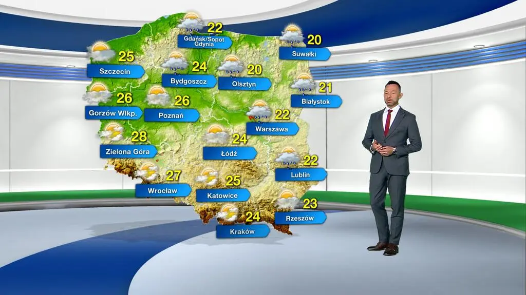 W poniedziałek na północnym wschodzie i wschodzie kraju prognozowane jest zachmurzenie umiarkowane i duże. Okresami może wystąpić deszcz do 5 litrów wody na metr kwadratowy. Poza tym dzień będzie pogodny. Na termometrach zobaczymy od 20 st. C na Warmii i Suwalszczyźnie, przez 24 st. C w centrum kraju, do 28 st. C na Ziemi Lubuskiej. Powieje słaby i umiarkowany wiatr zachodni i północno-zachodni.