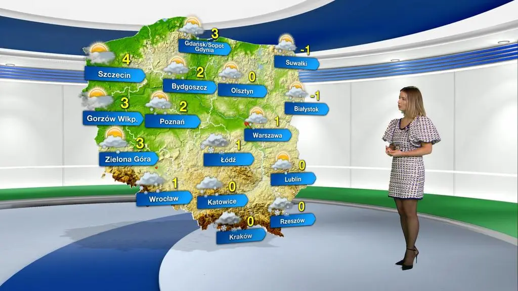 Pochmurno z przejaśnieniami, okresami opady mokrego śniegu. Temperatura minimalna sięgnie -2 st. C. Północno-zachodni wiatr będzie umiarkowany, okresami silniejszy. Ciśnienie o północy wyniesie 998 hPa.