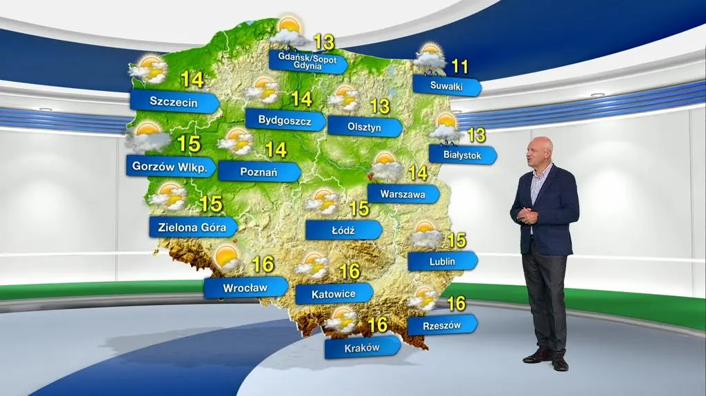 Poniedziałek na Wybrzeżu Gdańskim, Mazurach i Podlasiu przyniesie słabe opady deszczu. W pozostałych regionach nie powinno padać, a do tego spodziewane są przejaśnienia i dłuższe rozpogodzenia. Temperatura maksymalna wyniesie od 11 st. C w Suwałkach, przez 14-15 st. C w centrum kraju, do 16 st. C na południu. Słaby lub umiarkowany wiatr powieje z zachodu.