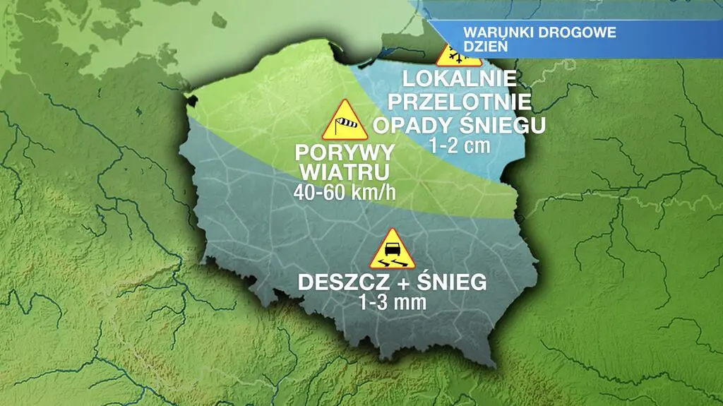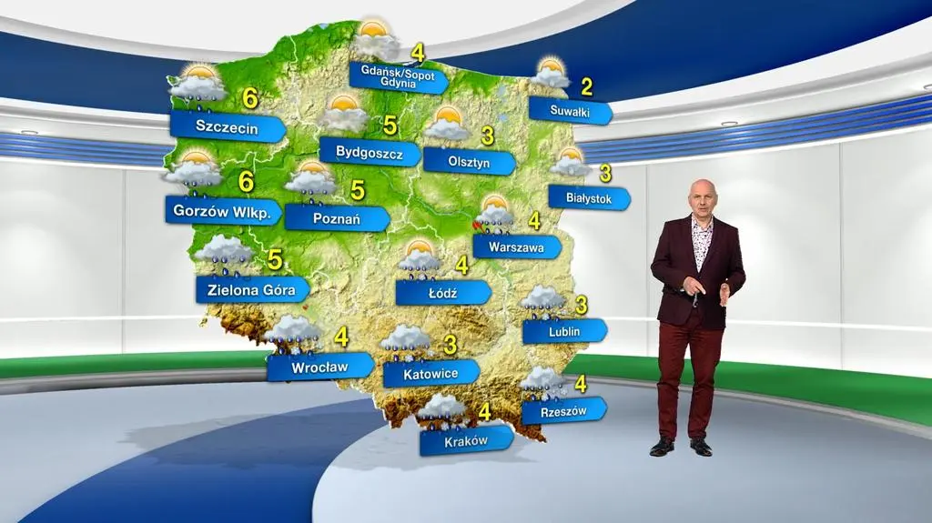 Sobota zapowiada się bardzo pochmurno, ale możliwe są rozpogodzenia. Padać nie powinno tylko w północnych regionach. Z kolei na północnym wschodzie możliwe są przelotne opady śniegu do 2 cm, a w pozostałej części kraju także okresami słabe opady deszczu ze śniegiem rzędu 1-3 litrów wody na metr kwadratowy. Temperatura maksymalna wyniesie od 2 st. C na Mazurach i Suwalszczyźnie, przez 4 st. C w centrum kraju, do 6 st. C na Ziemi Lubuskiej i Pomorzu Zachodnim. Wiatr z północnego zachodu będzie umiarkowany i dość silny - w porywach osiągnie prędkość do 40-70 kilometrów na godzinę.
