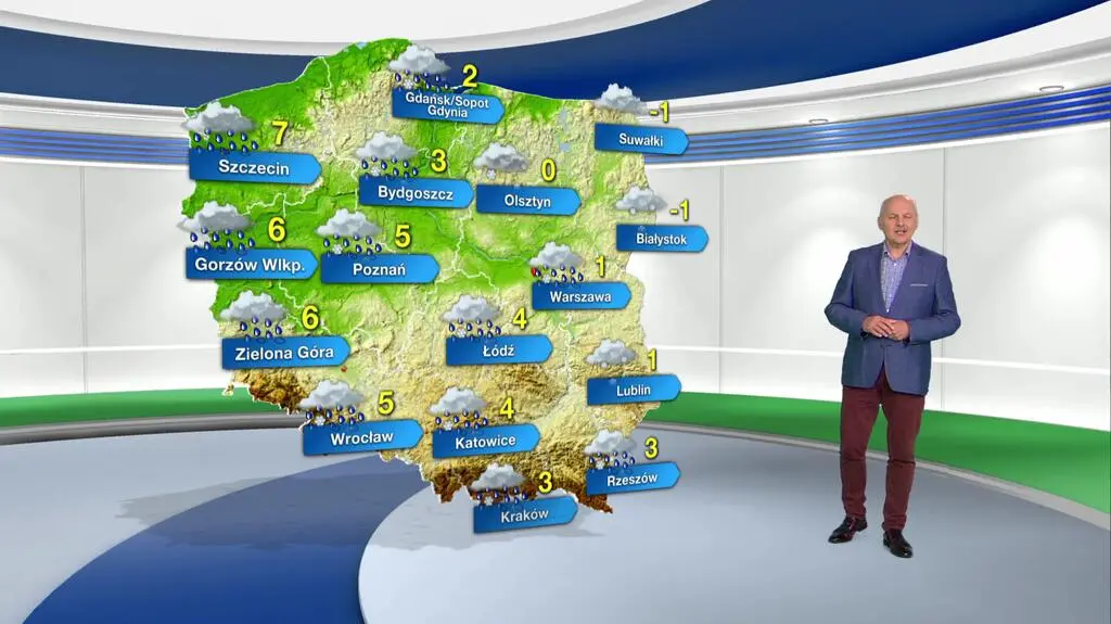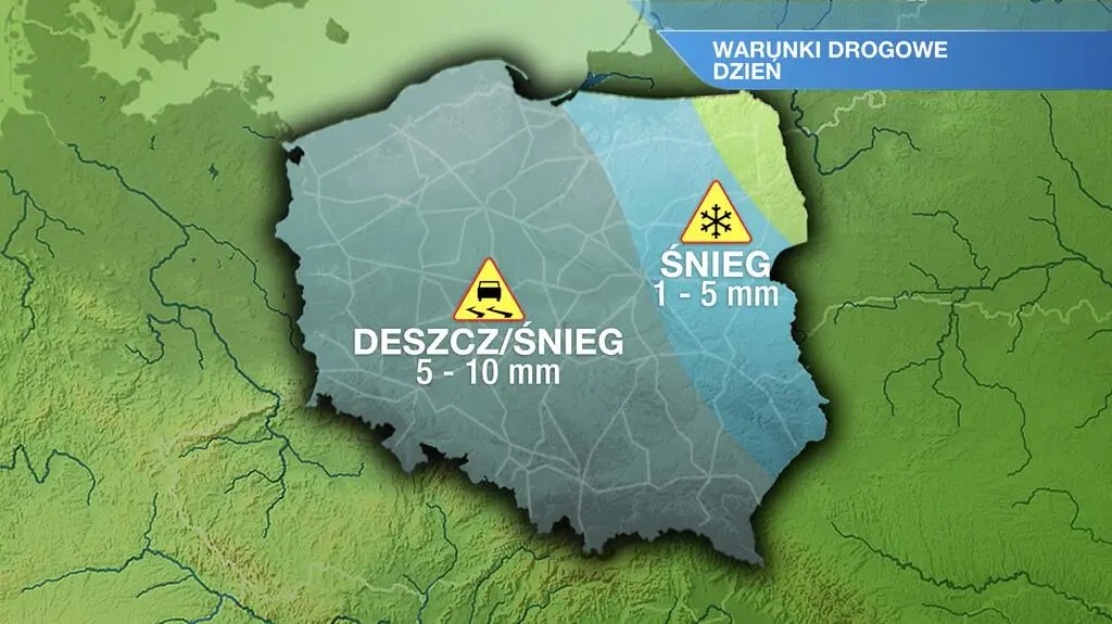 W nocy będzie pochmurno z niewielkimi przejaśnieniami. W południowej i wschodniej części Polski popada śnieg i deszcz ze śniegiem - lokalnie marznący. W górach dosypie śniegu. Temperatura minimalna wyniesie od -7 stopni Celsjusza na Suwalszczyźnie do 1 st. C na Podkarpaciu i w Małopolsce. Wiatr w północnej części kraju będzie słaby i umiarkowany, północno-zachodni, a w południowej części umiarkowany i dość silny, zachodni. Okresami w porywach rozpędzi się do 40-60 kilometrów na godzinę.