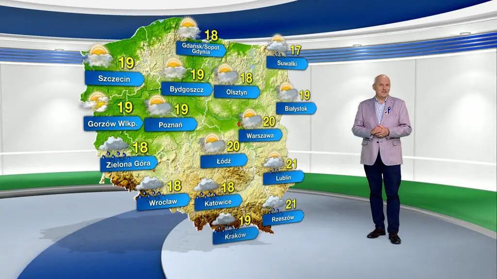 Temperatura w ciągu dnia wyniesie maksymalnie od 17 st. C na Suwalszczyźnie, poprzez 20 st. C w centrum, do 21 st. C w Polsce południowo-wschodniej. Zachodni wiatr będzie słaby i umiarkowany, jedynie na wschodzie i północy dość silny, rozpędzi się do 40-60 km/h.