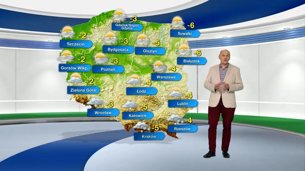W środę na południu i w centrum kraju prognozowany jest wzrost zachmurzenia do dużego z opadami śniegu do 1-3 cm, w górach do 5 cm. W pozostałych regionach spodziewane są większe przejaśnienia. Termometry pokażą maksymalnie od -6 st. C na Suwalszczyźnie i Podlasiu, przez -3/-4 st. C w centrum kraju, do -2 st. C na Pomorzu i Ziemi Lubuskiej. Południowo-wschodni wiatr będzie słaby i umiarkowany, okresami dość silny, a w porywach rozpędzi się do 50-60 kilometrów na godzinę.