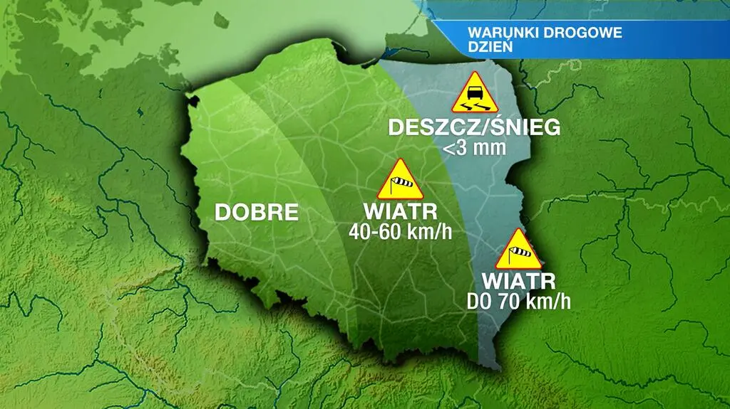 W środę niebo nad Polską będzie zachmurzone, ale pojawią się przejaśnienia i rozpogodzenia, najbardziej widoczne na zachodzie i południu kraju. We wschodniej Polsce spodziewane są słabe opady deszczu i deszczu ze śniegiem poniżej 3 l/mkw. Temperatura w ciągu dnia wyniesie od 3 st. C na Suwalszczyźnie do 7 st. C na Dolnym Śląsku. Zachodni i południowo-zachodni wiatr okaże się na ogół umiarkowany, jedynie na wschodzie i częściowo w centrum kraju dość silny z porywami 40-60 km/h, a na południowym wschodzie - do 70 km/h.