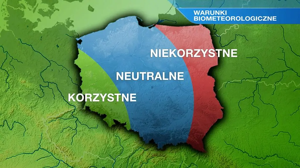 Wilgotność powietrza wyniesie od 80 do ponad 90 procent, a najwyższa wystąpi na północnym zachodzie. W zachodniej Polsce odczujemy komfort termiczny, w centrum będzie nam chłodno, a na wschodzie - zimno. Podobnie rozłożą się warunki biometeorologiczne - korzystne na południowym zachodzie, niekorzystne we wschodnich regionach i neutralne w centralnej Polsce.