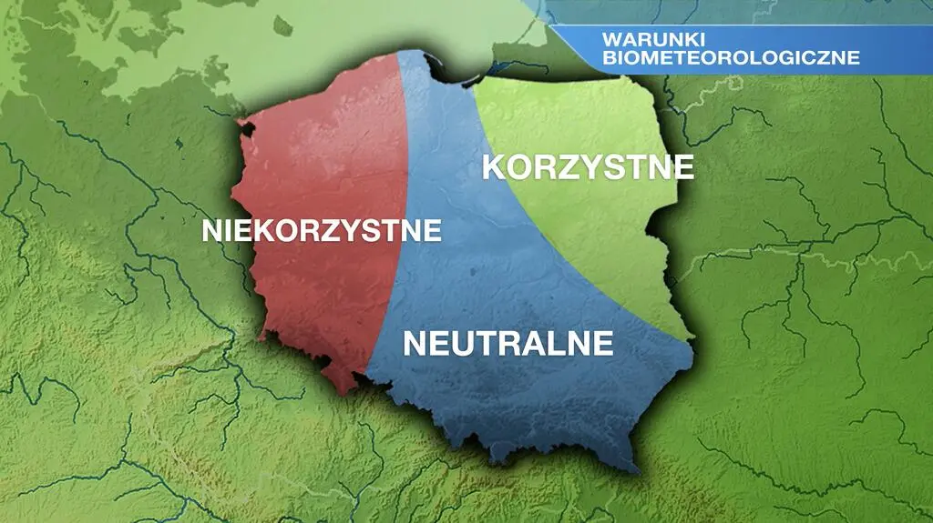 Wilgotność powietrza w ciągu dnia wyniesie 40-50 procent. Warunki biometeorologiczne będą niekorzystne na zachodzie, korzystne na północnym wschodzie, a w pozostałej części Polski - neutralne.