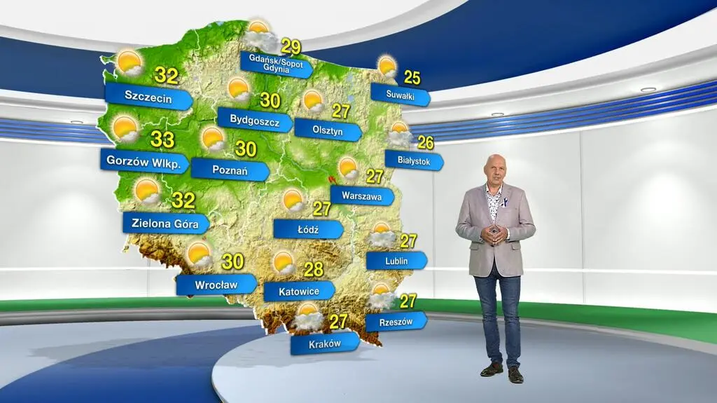 Środa upłynie pod znakiem pogodnej, a miejscami słonecznej aury. Termometry pokażą maksymalnie od 25 st. C na Suwalszczyźnie, przez 27 st. C w centrum kraju, do 33 st. C na zachodzie. Słaby wiatr będzie wiał ze zmieniających się kierunków.