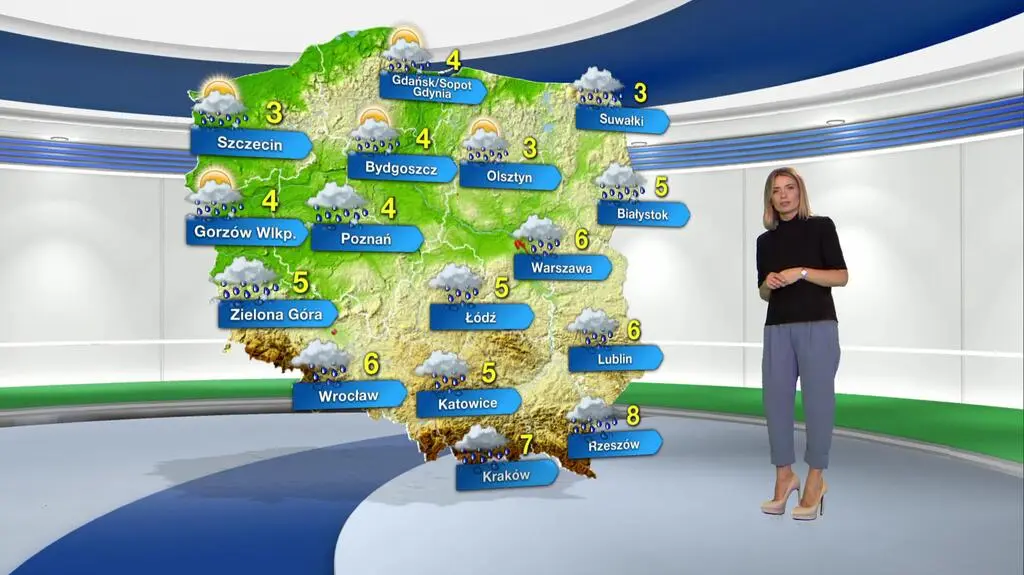 Pochmurno z opadami deszczu. Temperatura minimalna wyniesie 3 st. C. Powieje południowo-zachodni, słaby i umiarkowany, okresami dość silny wiatr. Ciśnienie o północy osiągnie 984 hPa.