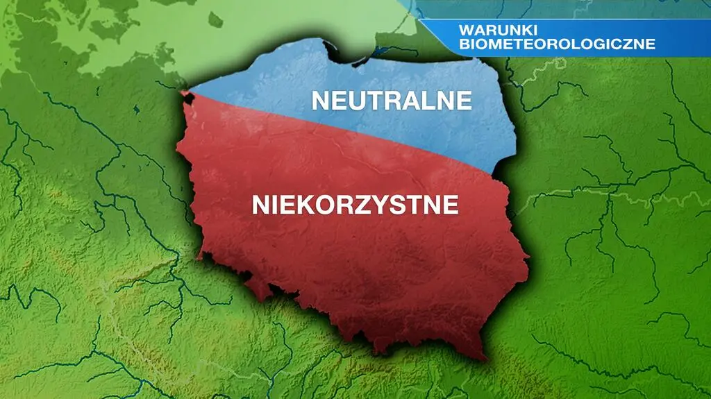Wilgotność powietrza w ciągu dnia będzie wysoka, w przeważającej części kraju wynosząca ponad 90 procent. Odczujemy chłód, jedynie na północnym wschodzie będzie zimno. Warunki biometeorologiczne okażą się niekorzystne, neutralne jedynie w północnej i północno-wschodniej Polsce.