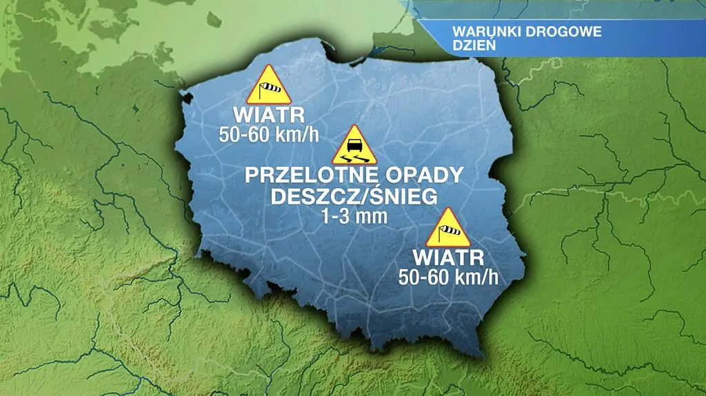 Pogoda na noc: pochmurno z większymi przejaśnieniami. Na południowym wschodzie kraju na ogół padać nie powinno. Na pozostałym obszarze okresami wystąpią opady deszczu ze śniegiem do 1-5 litrów wody na metr kwadratowy. Na termometrach zobaczymy od 0 stopnia Celsjusza na Warmii, Suwalszczyźnie, Lubelszczyźnie i Podkarpaciu, przez 2 st. C w centrum kraju, do 4 st. C na Ziemi Lubuskiej i Dolnym Śląsku. Wiatr będzie zachodni i południowo-zachodni, umiarkowany i dość silny, w porywach osiągnie do 60-80 kilometrów na godzinę.
