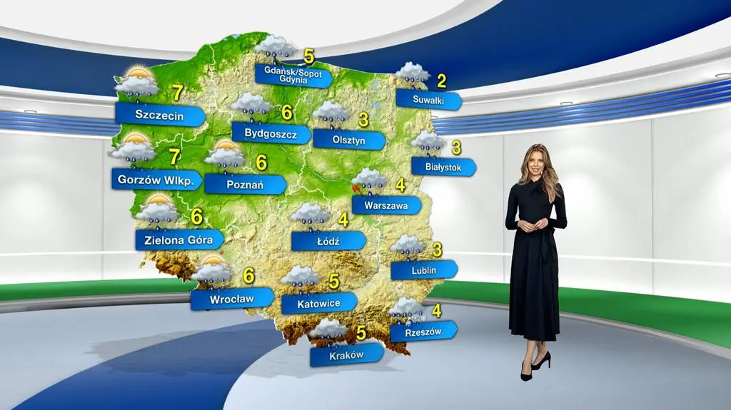 We wtorek w całym kraju prognozowane jest pochmurne niebo. Wystąpią rozpogodzenia, ale również przelotnymi opadami deszczu od 1 do 5 litrów na metr kwadratowy. Na termometrach zobaczymy od 2 st. C na Suwalszczyźnie, przez 4 st. C w regionach centralnych do 7 st. C na Pomorzu Zachodnim i Ziemi Lubuskiej. Z kierunków zachodnich powieje umiarkowany wiatr, na zachodzie i na Wybrzeżu w porywach dość silny, rozwijający prędkość do 40-60 km/h.