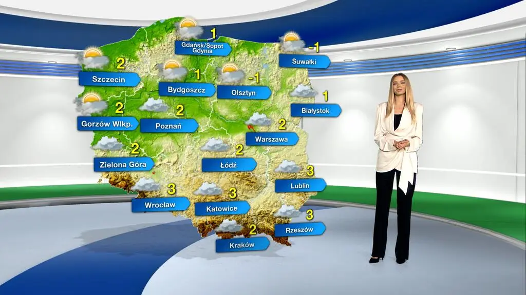 Wtorek przyniesie w Polsce pochmurne niebo. W północnym pasie kraju niebo może nieznacznie przejaśniać się w ciągu dnia. Mieszkańcy południowych regionów powinni przygotować się na zamglenia i mgły utrzymujące się miejscami do południa. Lokalnie może wystąpić mżawka. Na termometrach zobaczymy od -1 st. C na Suwalszczyźnie i Mazurach, poprzez 2 st. C w centralnej Polsce do 3 st. C w południowych i południowo-wschodnich regionach. Wiatr z kierunków północnych okaże się słaby.