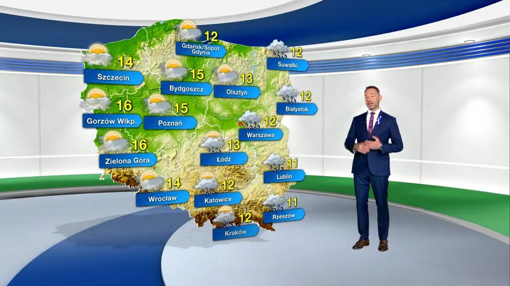 Wtorek przyniesie pochmurną aurę z większymi przejaśnieniami. Na wschodzie, południowym wschodzie i w centrum kraju prognozuje się okresami słabe opady deszczu do dwóch l/mkw. Termometry pokażą maksymalnie od 11 st. C na Lubelszczyźnie i Podkarpaciu, przez 13 st. C w centrum kraju, do 16 st. C na Ziemi Lubuskiej. Wiatr z kierunków północnych, będzie słaby i umiarkowany.