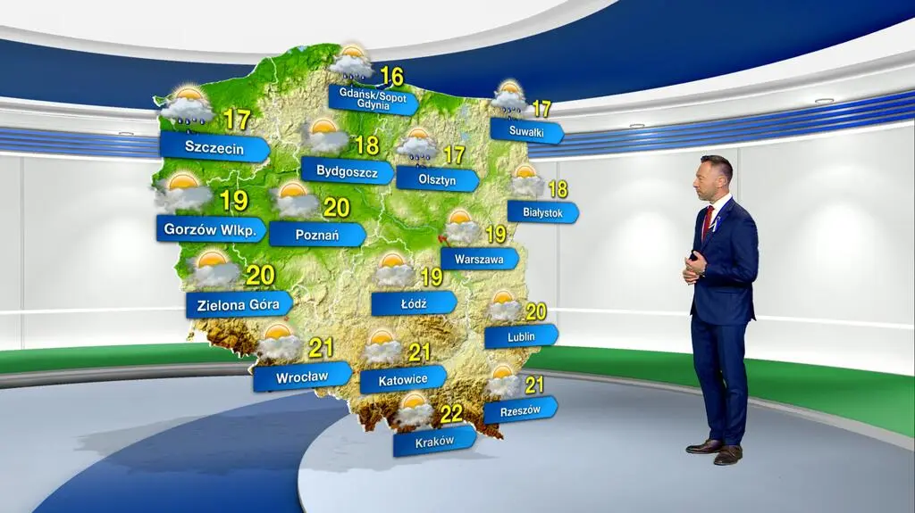 Wtorek przyniesie zachmurzenie od małego oraz umiarkowanego w regionach wschodnich i południowych do dużego na północy i zachodzie. W pasie Polski północnej oraz wieczorem na zachodzie kraju wystąpią słabe, przelotne opady deszczu rzędu 5 litrów wody na metr kwadratowy. Temperatura maksymalna sięgnie od 16-17 st. C na północy do 20-22 st. C na południu. Południowo-zachodni wiatr powieje słabo. Umiarkowany może być jedynie w rejonie północno-wschodniej i wschodniej Polski.