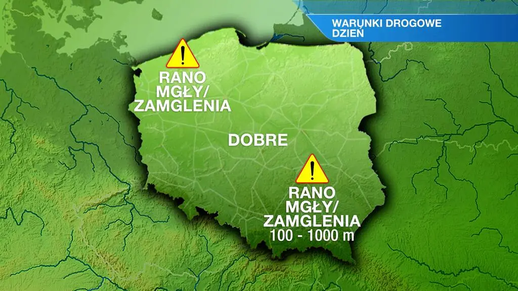 W ciągu dnia, po ustąpieniu porannych mgieł oraz zamgleń, warunki drogowe na terenie całej Polski będą dobre.
