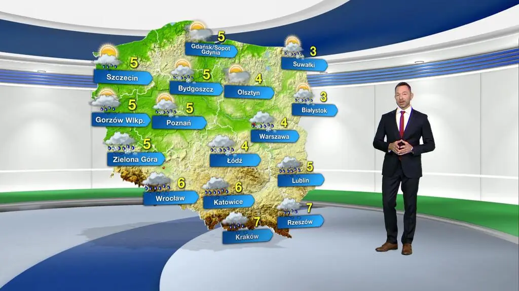 Piątek (11.02) przyniesie pochmurną aurę z opadami deszczu, miejscami okresowo deszczu ze śniegiem do 5-10 l/mkw. W północnej połowie kraju prognozuje się przejaśnienia, a wieczorem stopniowo postępujące od północnego zachodu w głąb kraju rozpogodzenia. Termometry pokażą maksymalnie od 3 st. C na Suwalszczyźnie i Podlasiu, przez 4 st. C w centrum kraju, do 7 st. C na Podkarpaciu i w Małopolsce. Wiatr z kierunków zachodnich, umiarkowany, na Pomorzu, zachodzie i południu dość silny, w porywach rozpędzi się do 50-70 kilometrów na godzinę.
