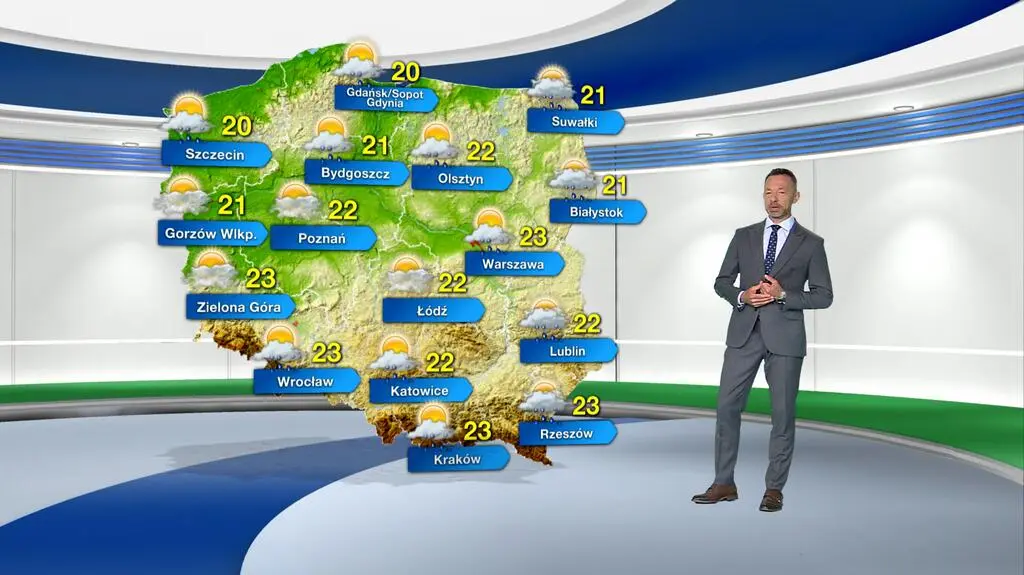W środę początkowo na wschodzie wystąpi pełne zachmurzenie z umiarkowanymi i intensywnymi opadami deszczu, których strefa odsuwać się będzie na wschód. W pozostałych regionach kraju dzień przyniesie umiarkowane, przejściowo duże zachmurzenie, miejscami ze słabymi, przelotnymi opadami deszczu. Lokalnie na południu możliwa jest słaba burza. Padać nie powinno jedynie na zachodzie kraju. Termometry pokażą maksymalnie od 20-21 st. C na północy do 22-23 st. C na południu i w centrum. Wiatr umiarkowany, północno-zachodni, na Wybrzeżu w porywach rozpędzi się do 40 kilometrów na godzinę.