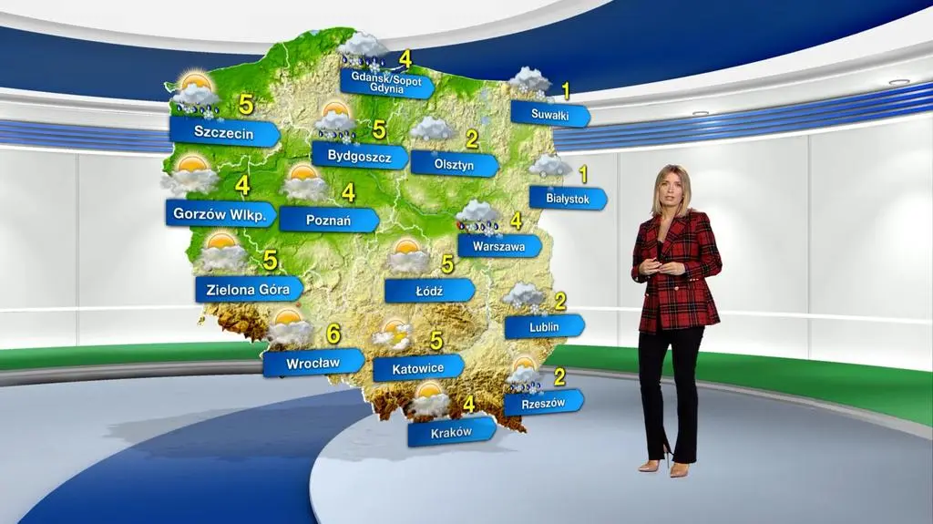 Pogoda na noc: na ogół pochmurno. Spodziewane są opady śniegu, deszczu i deszczu ze śniegiem - na wschodzie miejscami marznące. Może być ślisko. Temperatura minimalna wyniesie od -1 stopnia Celsjusza na Podkarpaciu do 4 st. C na Dolnym Śląsku. Wiatr będzie silny i porywisty, w porywach rozpędzi się do 60-100 kilometrów na godzinę. Powieje z zachodu. W strefie brzegowej porywy przekraczać mogą 110 km/h.