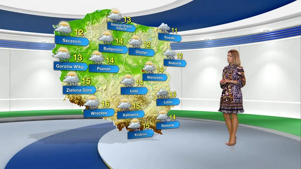 Pochmurno z przejaśnieniami i opady deszczu. Temperatura maksymalna wyniesie 14 st. C. Powieje umiarkowany wiatr z południowego zachodu, okresami w porywach może rozpędzać do 40-60 km/h. Ciśnienie w południe osiągnie 1000 hPa.
