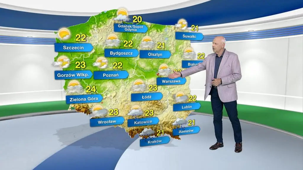 W czwartek na południu kraju prognozuje się stopniowy wzrost zachmurzenia. Pojawią się tam słabe lub umiarkowane opady deszczu o sumie 10-25 litrów na metr kwadratowy. Padać ma w pasie od Śląska, przez Małopolskę, po Podkarpacie, a w Tatrach, Beskidach i Bieszczadach lokalnie możliwe są także burze. W pozostałych regionach będzie na ogół pogodnie, z małym lub umiarkowanym zachmurzeniem i ze słabym przelotnym deszczem w rejonie Zatoki Gdańskiej. Termometry wskażą maksymalnie od 20 stopni Celsjusza w Gdańsku do 24 st. C w Zielonej Górze. Wiatr, słaby lub umiarkowany, powieje ze zmiennych kierunków. Porywisty może być tylko w czasie burzy na południu kraju.