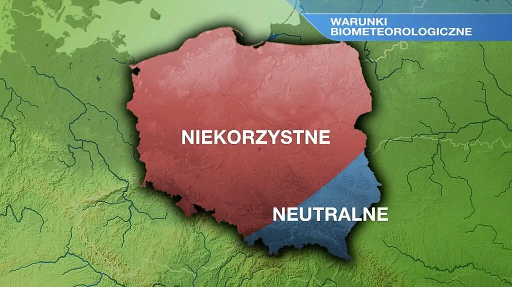 Wilgotność powietrza oscylować będzie wokół 60 procent. W całym kraju odczujemy chłód. Warunki biometeorologiczne przeważnie okażą się niekorzystne, tylko na południowym wschodzie będą neutralne.